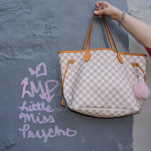 Since the event was geared around some vintage finds, I thought this would be a great venue to wear my 10 year old Bebe skirt (even though its not technically vintage). Especially since a lot of thrifting is finding pieces and translating them into your wardrobe for modern day wear, I decided to keep the theme and rock my 10 year old skirt with a more modern off the shoulder top and bright wedges to pull the look together. Before the event, Roxanne and I met for outfit pictures and to have a quick catch-up session before shopping at the VIP party. We walked the block and found this painted brick wall and decided it would make a perfect backdrop. I was also amused by the "Little Miss Psycho" street graffiti so I decided to use the humorous words as a backdrop for some of my shots. Shout out to the fab Glass of Glam Roxanne for these fun pictures!